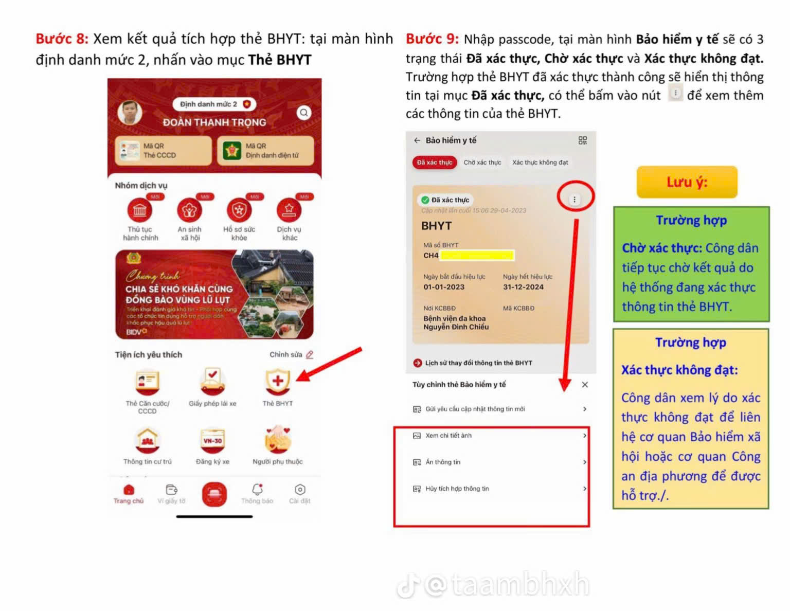 Hình ảnh hướng dẫn tích hợp bảo hiểm y tế vào ứng dụng VNeid: