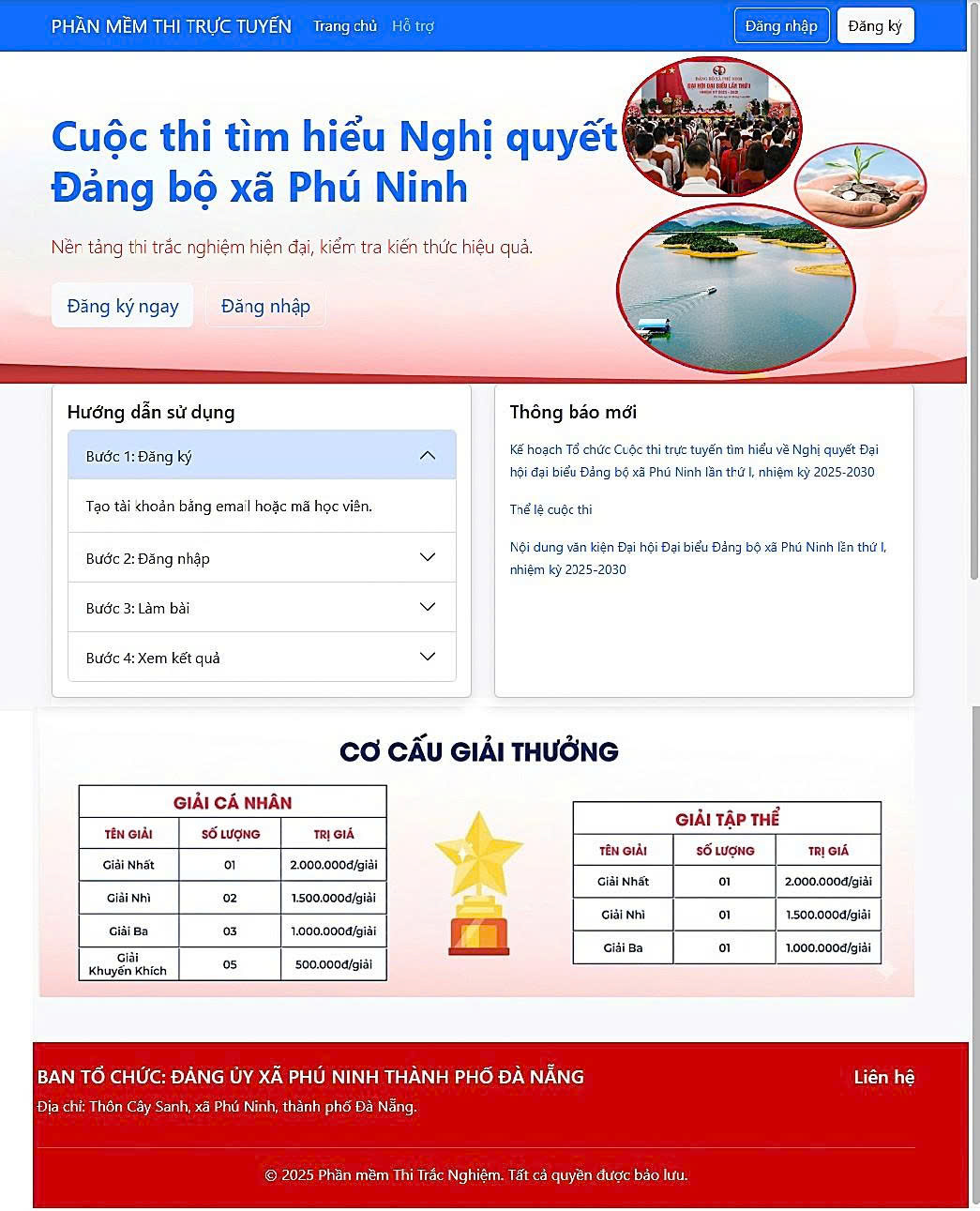 - Kết thúc Cuộc thi, Ban Tổ chức Cuộc thi sẽ công bố kết quả các cá nhân trên website: phuninh.danang.gov.vn.