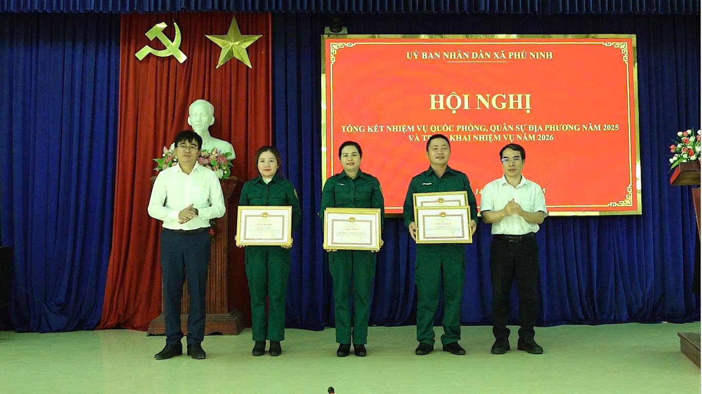 Dịp này, UBND xã Phú Ninh đã khen thưởng 2 tập thể và 3 cá nhân có thành tích xuất sắc trong thực hiện nhiệm vụ quốc phòng, quân sự địa phương năm 2025./.