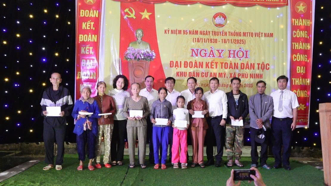 Lãnh đạo xã Phú Ninh tham dự gồm ông Đặng Văn Đào – Bí thư Đảng ủy, Chủ tịch HĐND xã; ông Nguyễn Hữu Bình – Phó Bí thư, Chủ tịch UBND xã; ông Bùi Hồng Long – UVBTV, Chủ tịch Ủy ban MTTQ Việt Nam xã; cùng đông đảo cán bộ, đảng viên và bà con khu dân cư An Mỹ.
