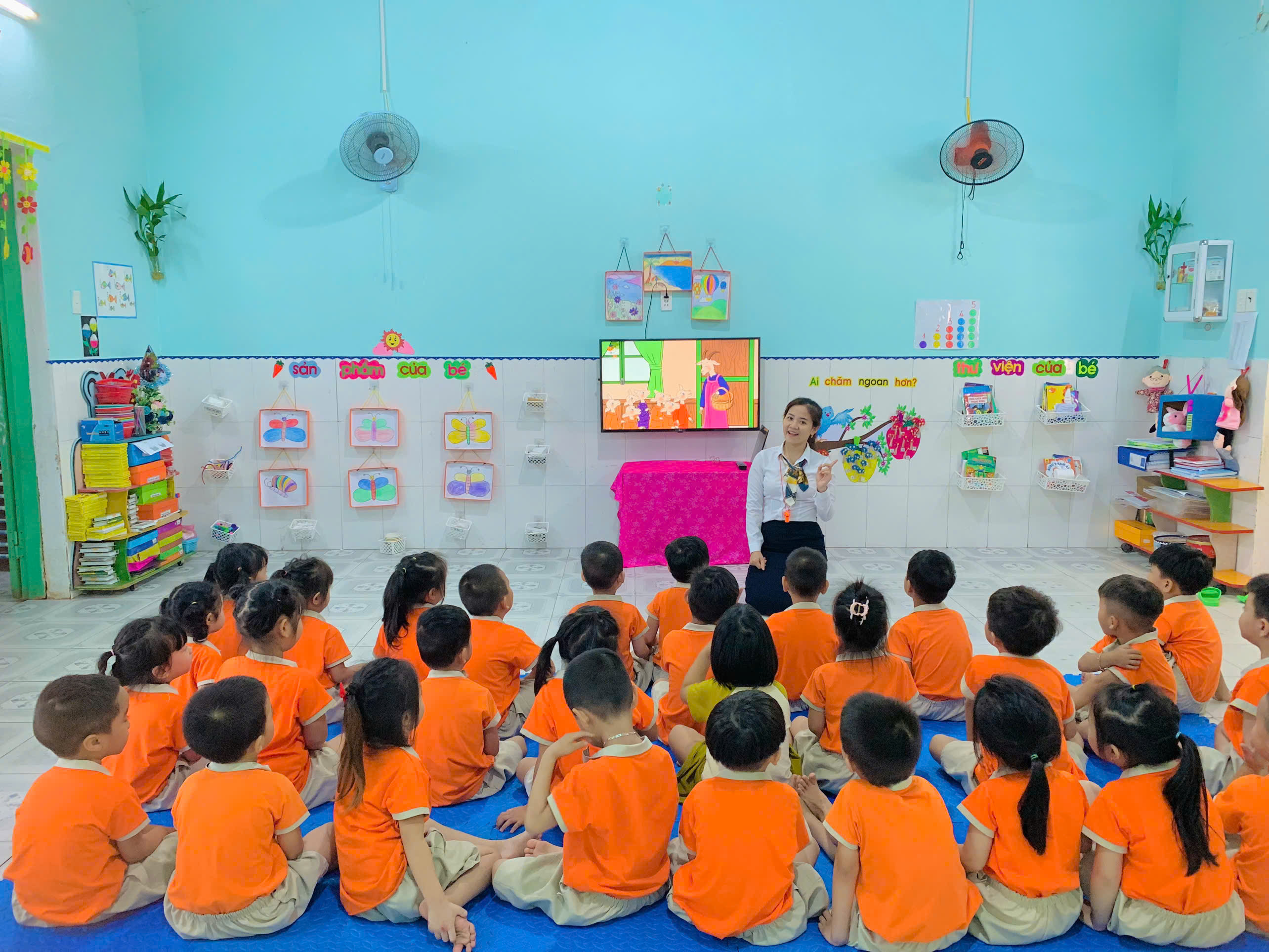 Cô giáo Nguyễn Thị Ánh Thuý đang tổ chức một hoạt động cho trẻ tại lớp học
