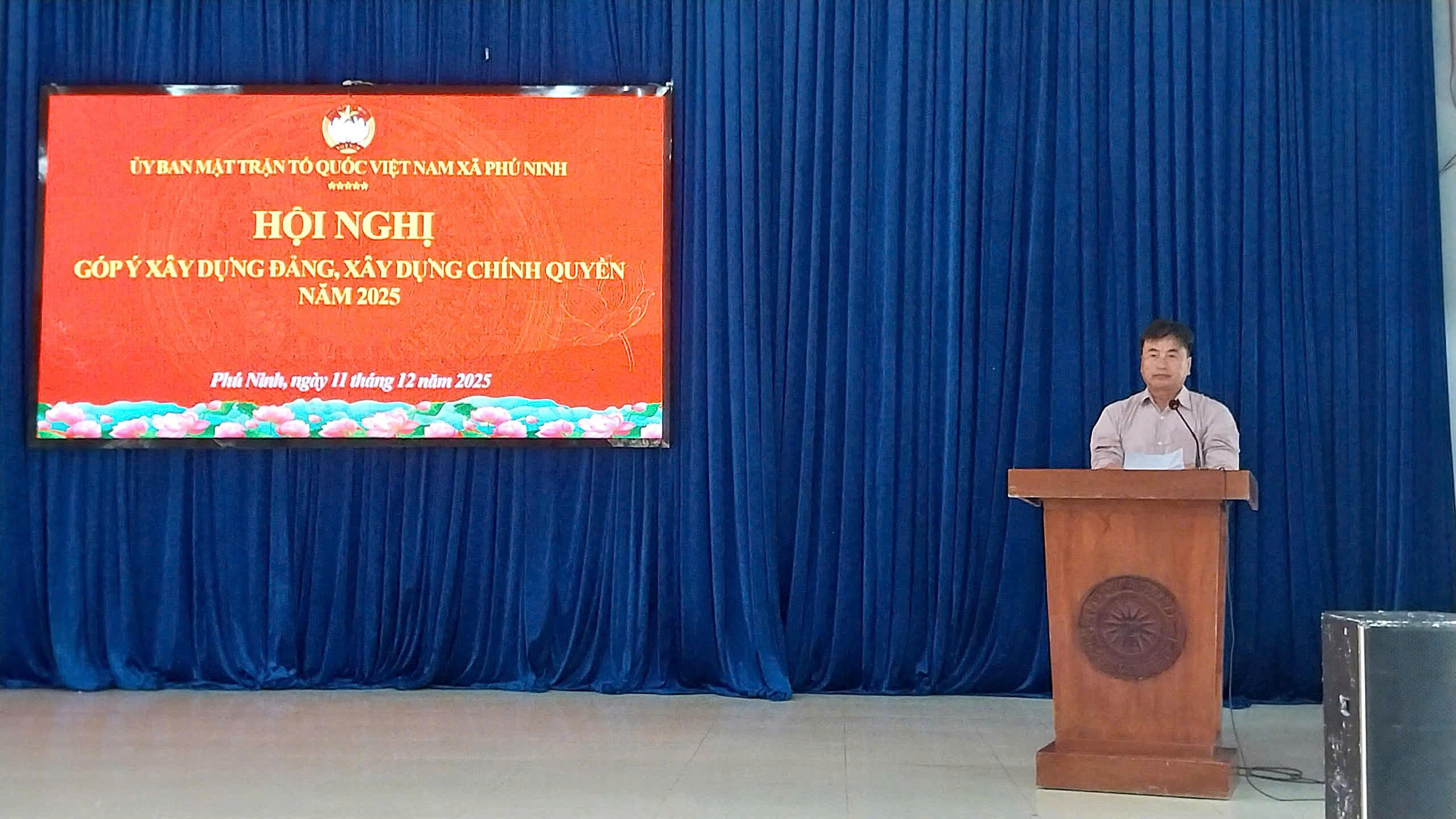 Phát biểu tại hội nghị, đồng chí Nguyễn Hùng Linh – Phó Bí thư Thường trực Đảng ủy xã Phú Ninh ghi nhận và trân trọng tiếp thu các ý kiến đóng góp của đại biểu. Đồng chí khẳng định Mặt trận luôn giữ vai trò quan trọng trong phản ánh tâm tư, nguyện vọng của Nhân dân, góp phần nâng cao chất lượng xây dựng Đảng và xây dựng chính quyền ở địa phương.